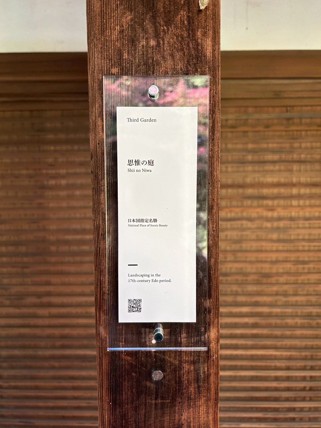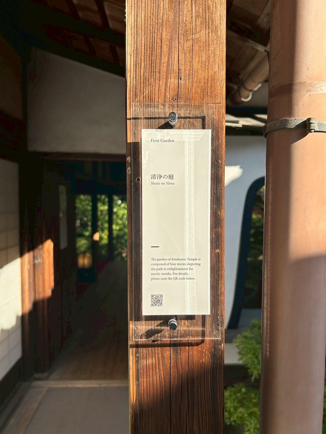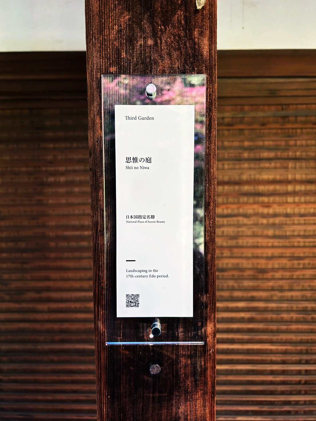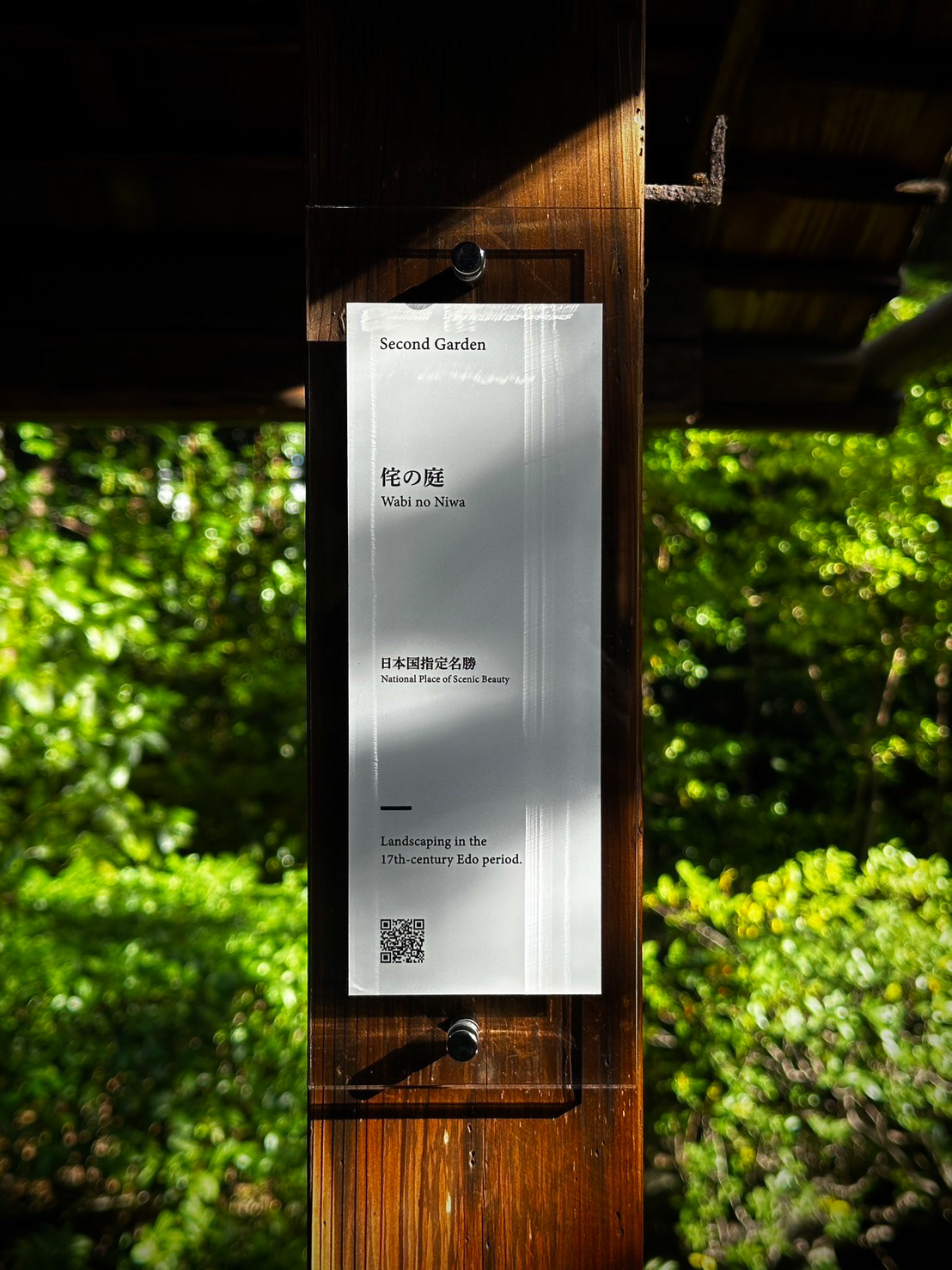 桂春院のサイン一部を改修。定点として機能していたサインをキャプションのサインへと刷新。襖絵から庭まですべて作品として捉えギャラリー空間として演出。既存サインと同位置に施工することで、これまであったサインの痕跡が見え隠れし現在と過去の様子が楽しめる仕掛けを施しました。