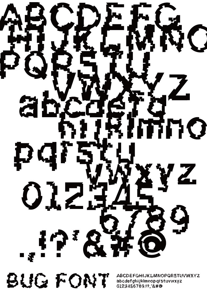 秩序の取れたラインにバグが起こったような不安定な揺らぎ与えた書体を設計。
